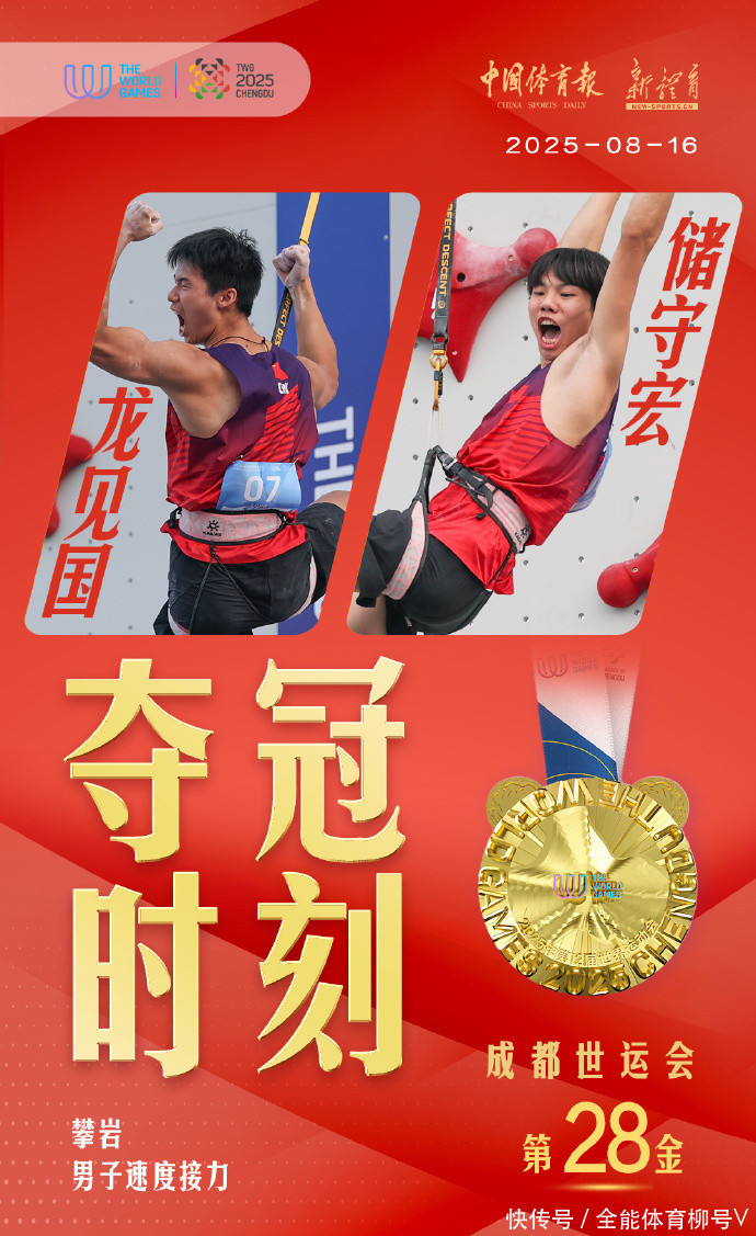 来到第10个比赛日,在攀岩须眉速率勤恳决赛中,由龙见国、储守宏构成的中国队获取冠军,中国代表团金牌总额高潮到28枚。接下来,中国队又获取攀岩女子速率勤恳金牌,总额到达29枚。