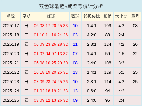 重号分析:在最近9期的奖号分析中,有5期开出过重号,本期展望开出重号的可能性较高,怜惜:32。
